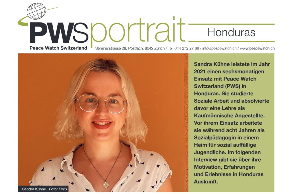 Sandra Kühne leistete 2021 mit Peace Watch Switzerland während sechs Monaten einen Einsatz als Menschenrechtsbeobachterin in Honduras. Im folgenden Portrait erzählt sie uns von ihrer Motivation, Erfahrungen und Erlebnisse im Einsatz.