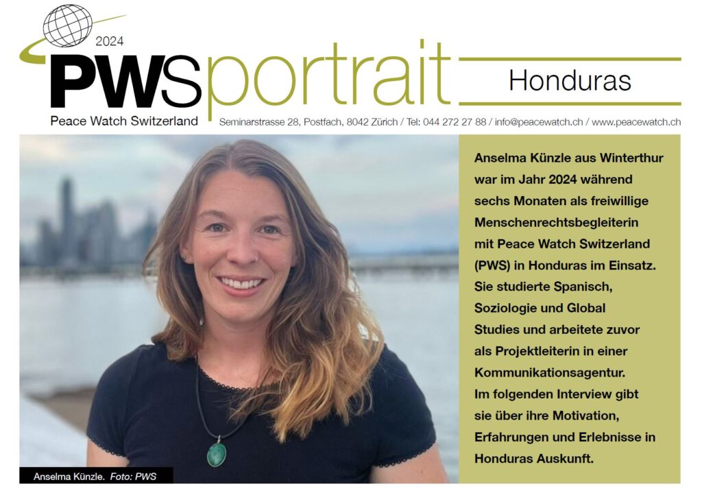 Anselma Künzle aus Winterthur war im Jahr 2024 während sechs Monaten als freiwillige Menschenrechtsbegleiterin mit Peace Watch Switzerland (PWS) in Honduras im Einsatz. Sie studierte Spanisch, Soziologie und Global Studies und arbeitete zuvor als Projektleiterin in einer Kommunikationsagentur. Im folgenden Interview gibt sie über ihre Motivation, Erfahrungen und Erlebnisse in Honduras Auskunft.