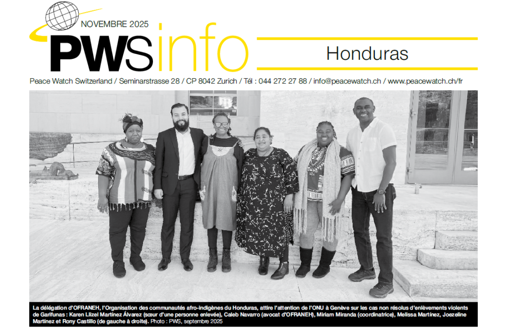 Geschlechterbasierte Gewalt betrifft weltweit Millionen von Frauen und Mädchen. Mit unermüdlichem Einsatz setzen sich Frauenrechtsverteidigerinnen gegen strukturelle Gewalt und Ungleichheit ein. PWS hat für das vorliegende Infoblatt mit zwei engagierten Frauen, Guadalupe Carbajal aus Honduras und Marcelina Amaral aus Timor-Leste, gesprochen. Ihre Beispiele zeigen auf, wie wichtig internationale Beobachtung ist, um ihre Sicherheit und ihre Stimmen zu stärken und zu fördern. Lesen Sie den daraus entstandenen Bericht hier.